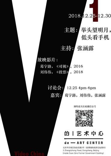 第一周活动将于2018年12月25日开始,由策展人张涵露主持,将放映艺术家葛宇路和刘伟伟两位艺术家的作品,并于25日开幕当天下午4点至6点举行映后对谈。