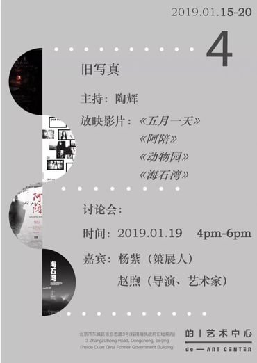 第四周活动为2019年1月15日至20日,由陶辉主持,放映作品:《五月一天》、《海石湾》、《阿陪》、《动物园》,1月19日 4pm-6pm 举行对谈。